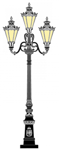 Leírás: Köztéri öntöttvas kandeláber, öntött alumínium lámpafejjel.