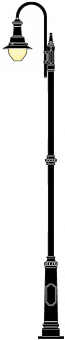 Leírás: Köztéri öntöttvas és csőoszlop kandeláber.